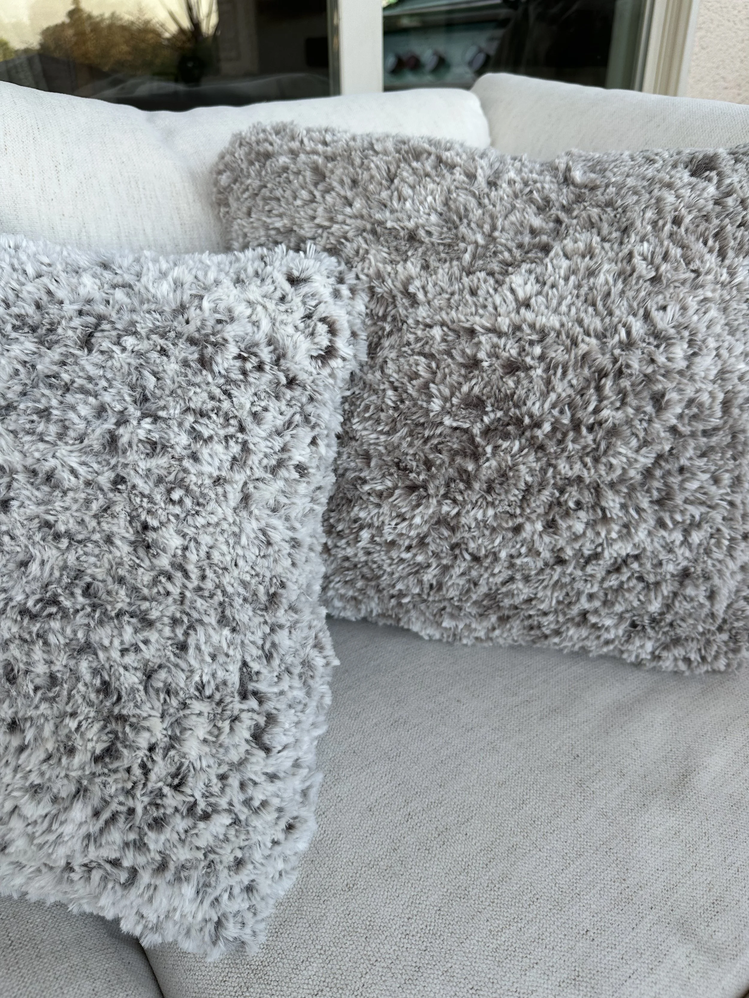 This Faux Fur Pillow Cover crochet Pattern is made with Loops & Threads 100% Polyester Faux Fur which comes in multiple colors. Substitutes can be used as long as it is equivalent to a Super Bulky 6 weight yarn. Following the pattern instructions, this creates a 16 inch pillow cover with a 12 mm hook